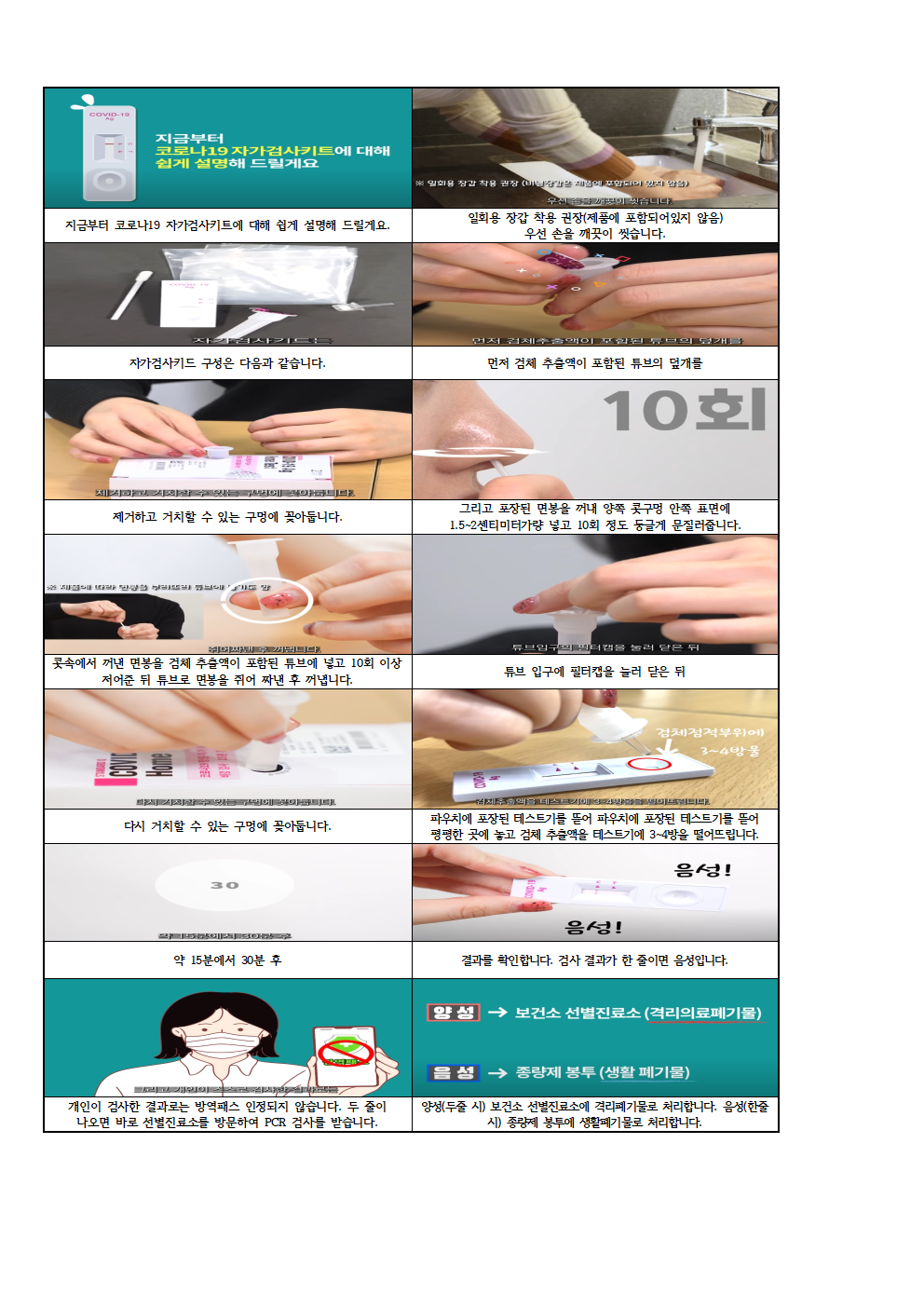 (양성으로 나타나면 보건소 선별진료소 에서 PCR검사 실시- 학교에 반드시 통보바랍니다.)