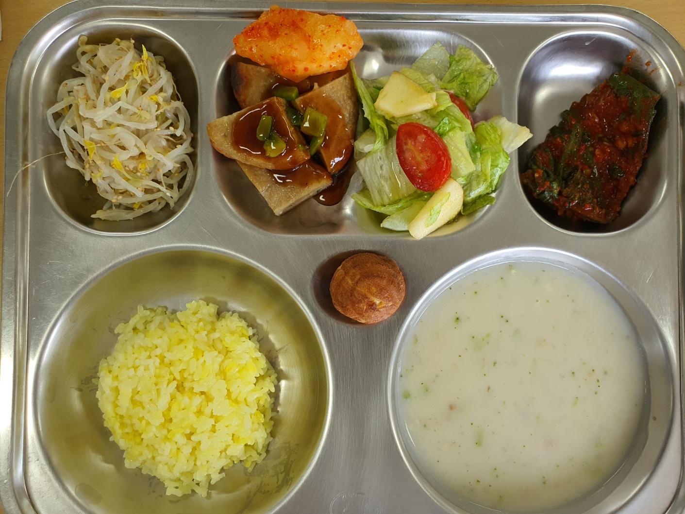 강황쌀밥,브로콜리크림스프2.5.6.13.16미니함박스테이크1.2.5.6.10.12.13.15.16